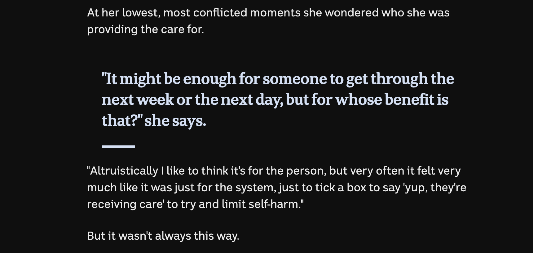 “One thing I am thinking about as I write this is my time working with Poh Lin Lee. Poh is a writer, teacher, researcher, and narrative therapist who works with filmmakers to help us better understand our practice, our relationships, our bodies, and ourselves. I worked with her on and off for several months in 2022 and 2023, in two different group settings with other filmmakers, as well as individually. These encounters with Poh mark a turning point in my creative practice.